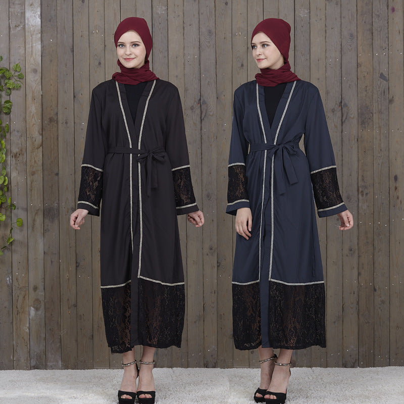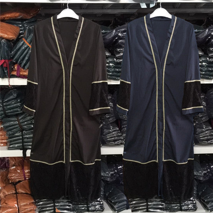 Lace Stitching Black Islamic Muslim Ethnic Fashion Long Skirt Middle East Long Skirt Robe