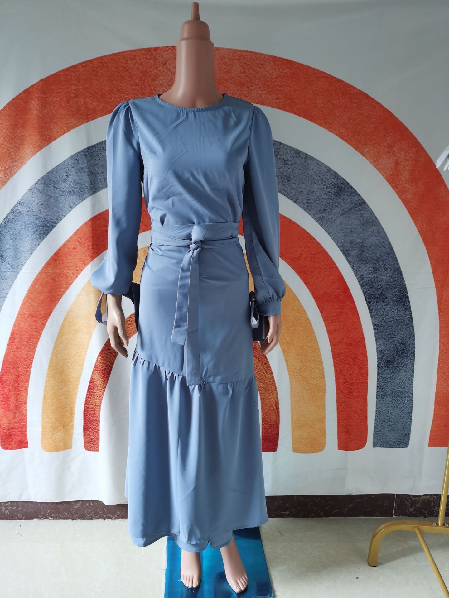 Middle East Arab Muslim Dubai Autumn New Fashion Long Sleeve Lace-up Half Body Dress Suit