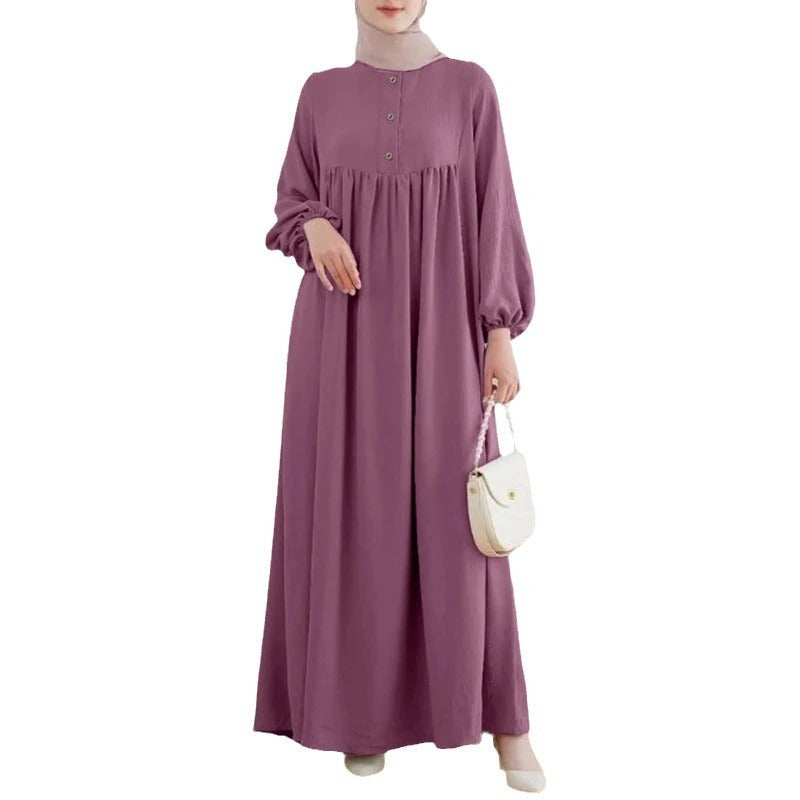Muslim Robe Casual Lantern Sleeve Simple Solid Color Dress