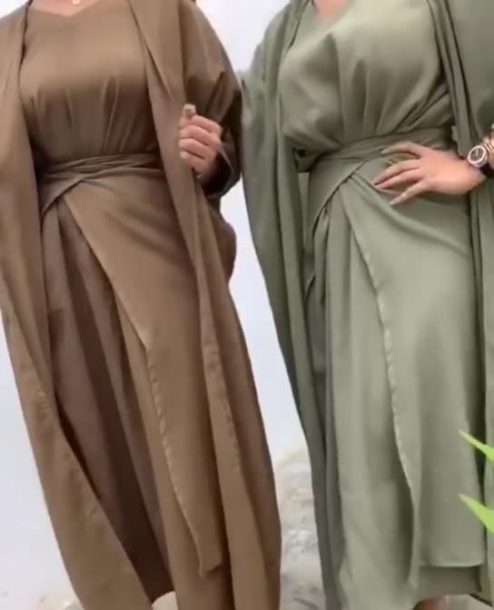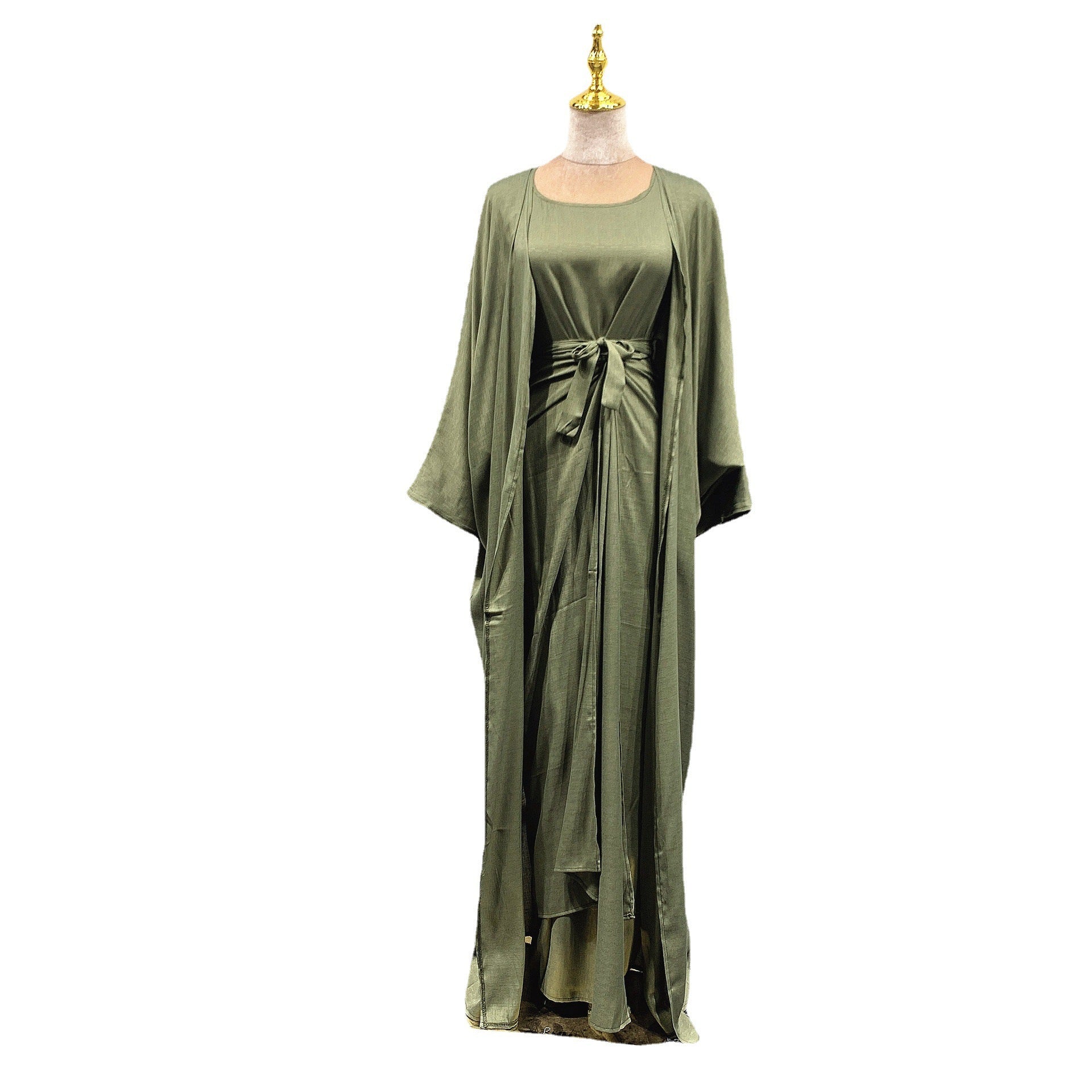 Muslim Women's Wear Gown Cardigan Robe Solid Color Three-piece Set
