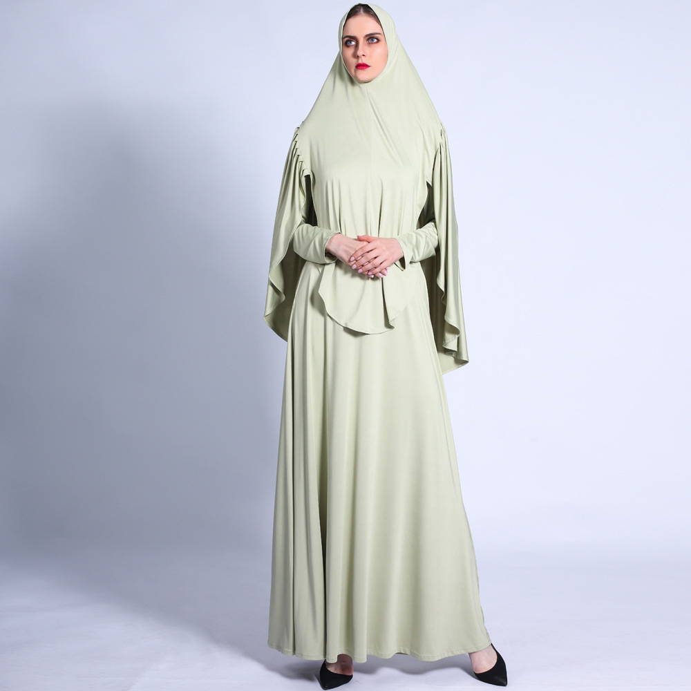 Pleated Turban Suit Muslim Solid Color Robe Retro Big Swing Dress