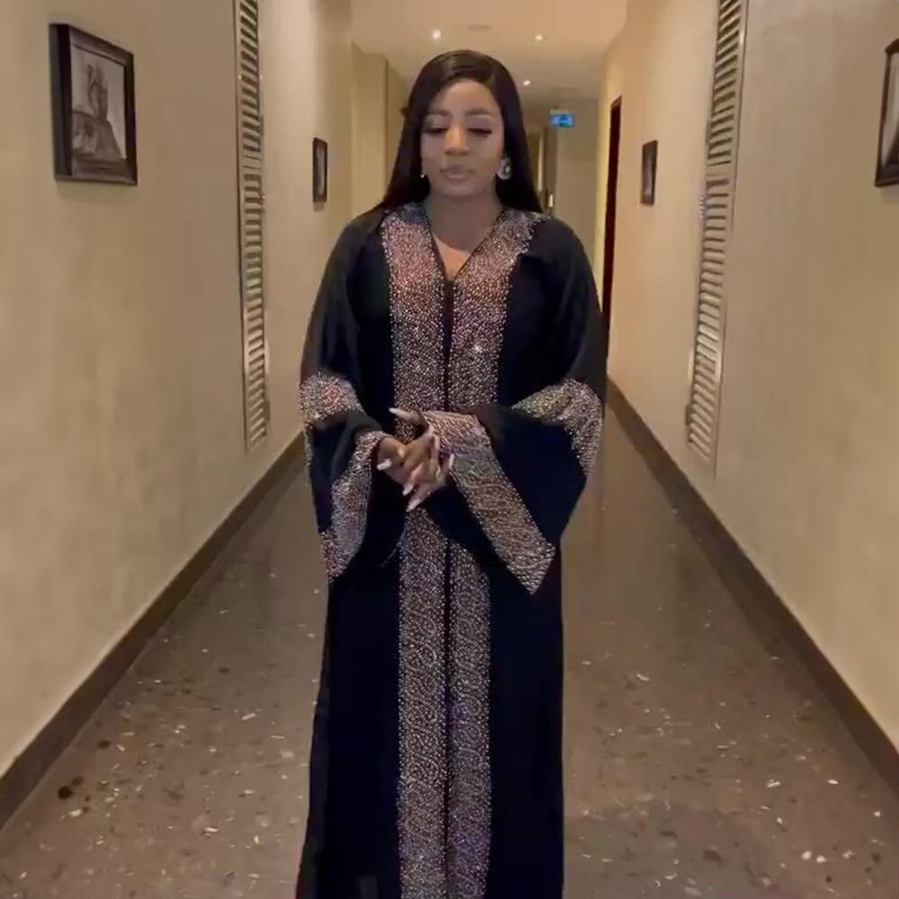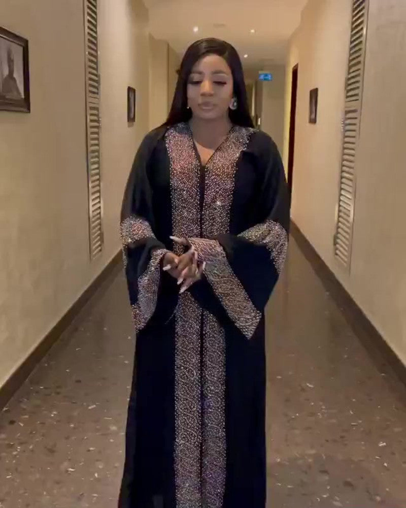 Women's Fashion Rhinestone Swing Dress Muslim Style Robe